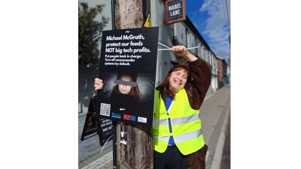When we heard that EU Commissioner Michael McGrath was refusing to turn off toxic algorithm recommender systems in the new European Democracy Shield. we made sure everyone in his hometown of Carrigaline in Cork was talking about it. [7]